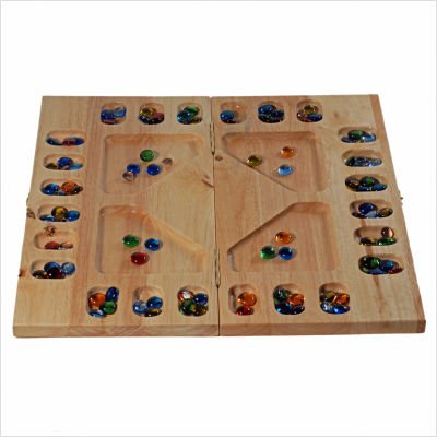 !±8± 4-Player Wood Mancala Game (African Stone Game) - Includes Assorted Colored Glass Stones